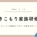 - 内容:「ひきこもり経験者から学ぶ~当事者の思い」